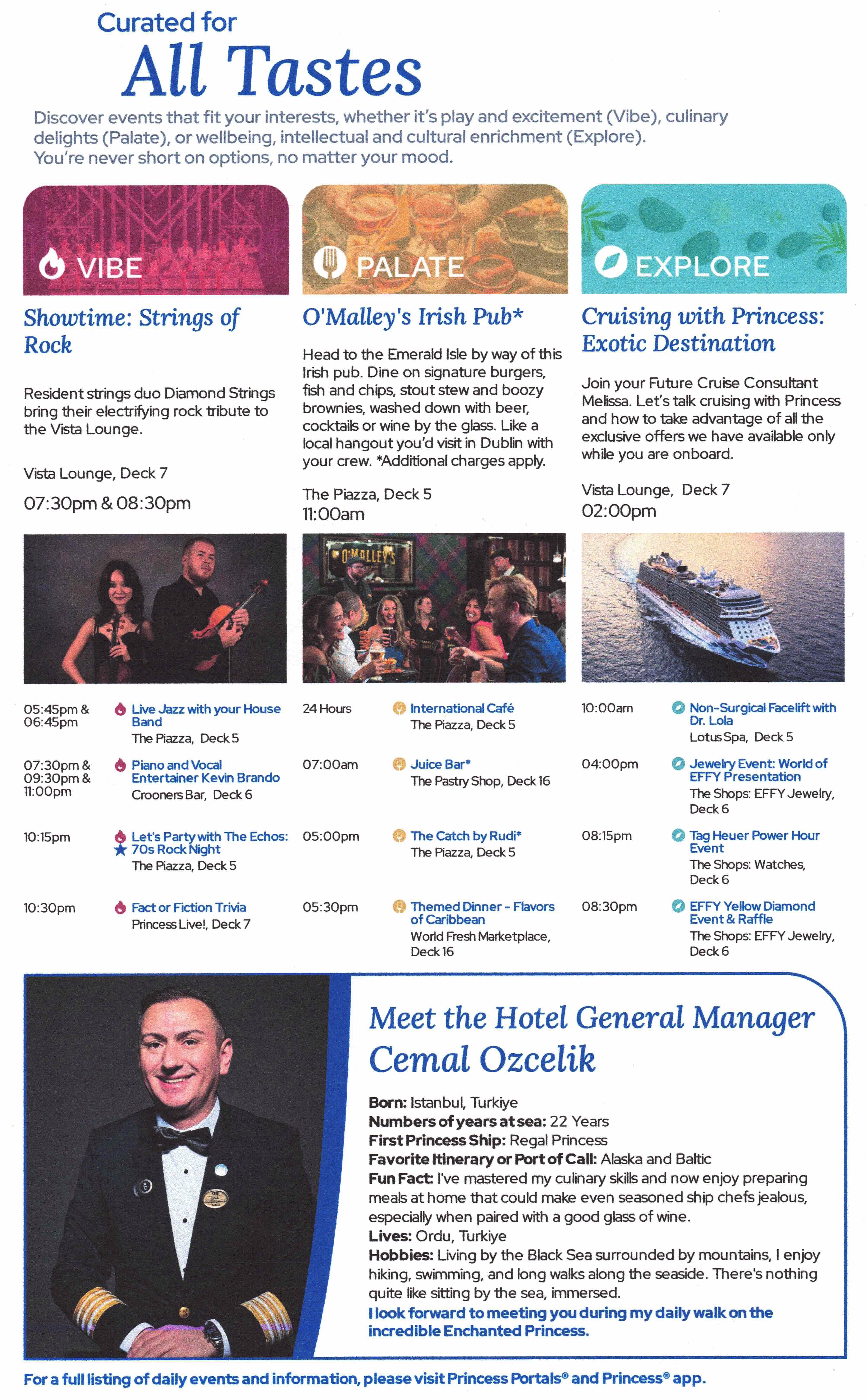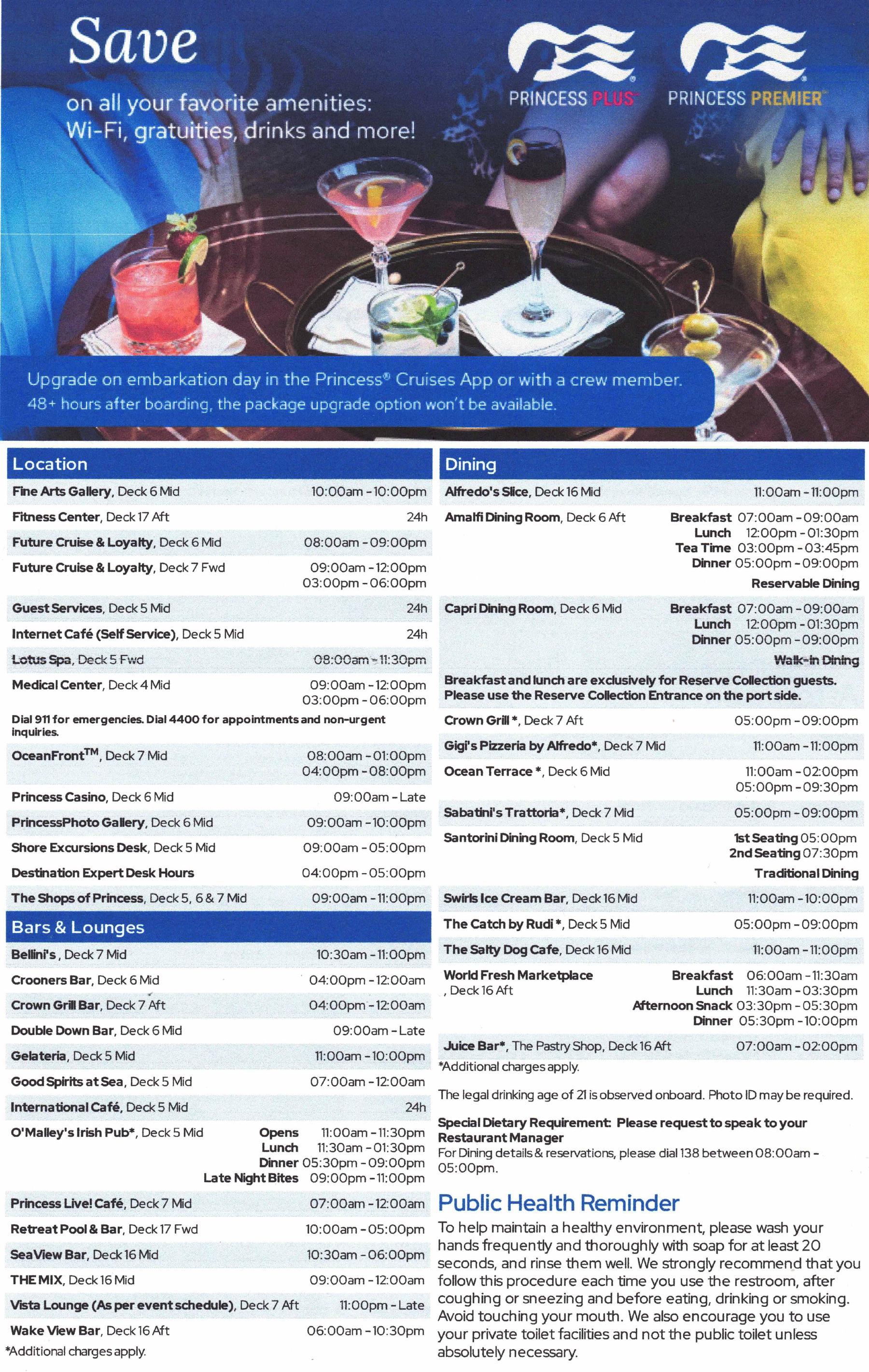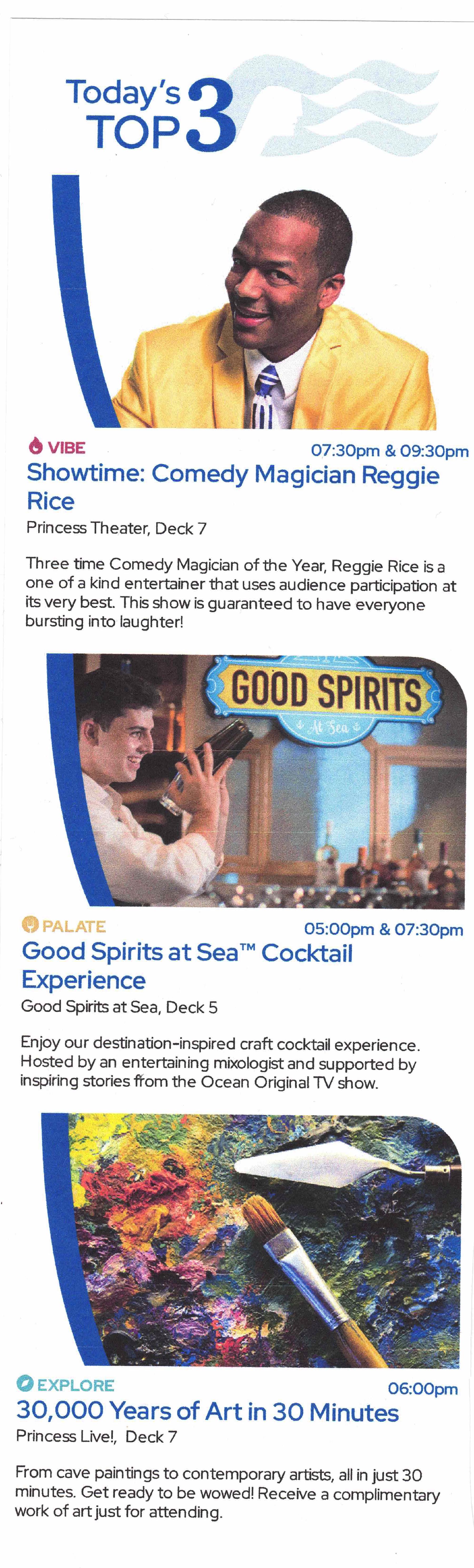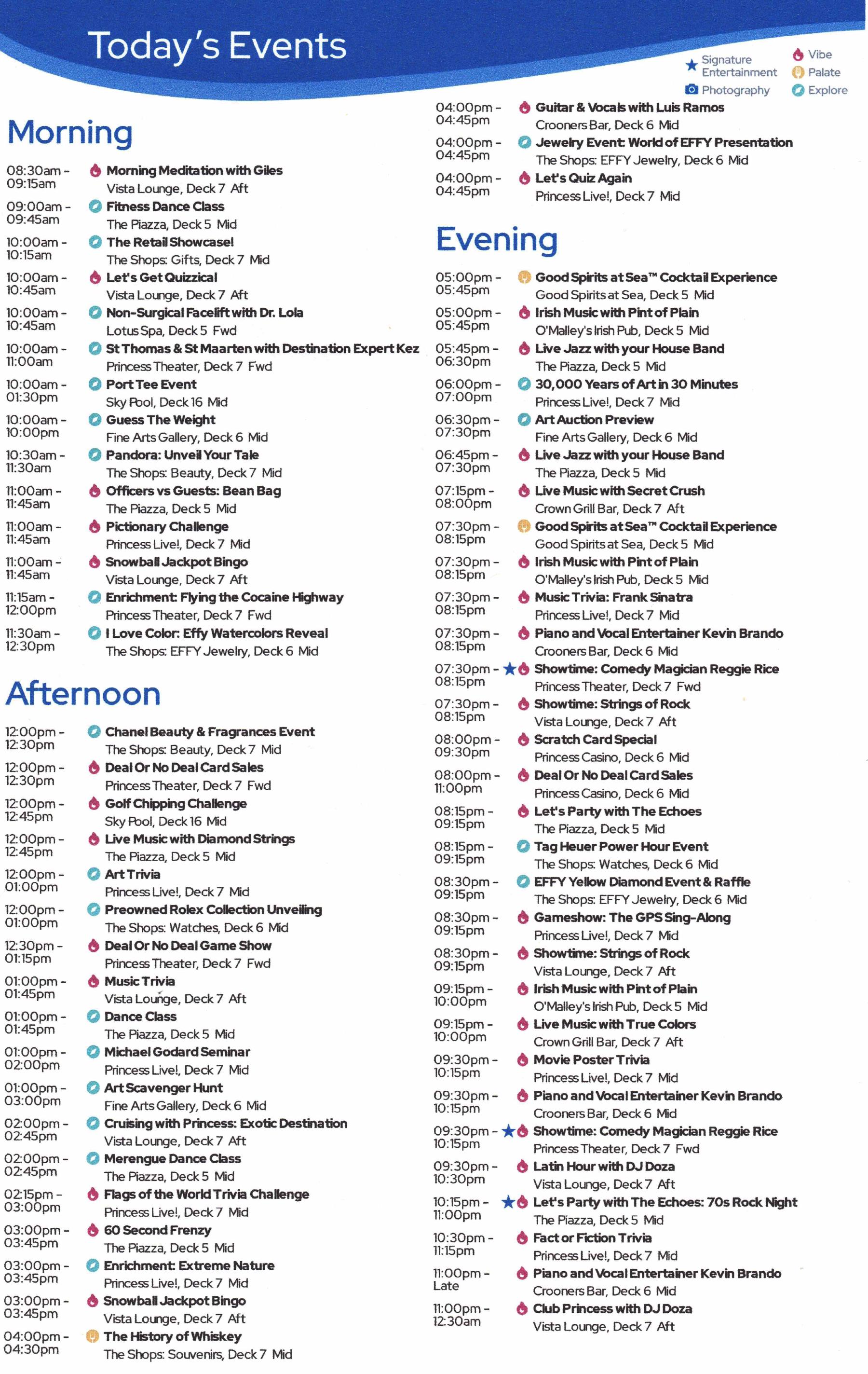 This flyer was received on Day 8 for the next day’s event on March 18 (Day 9 / At Sea).