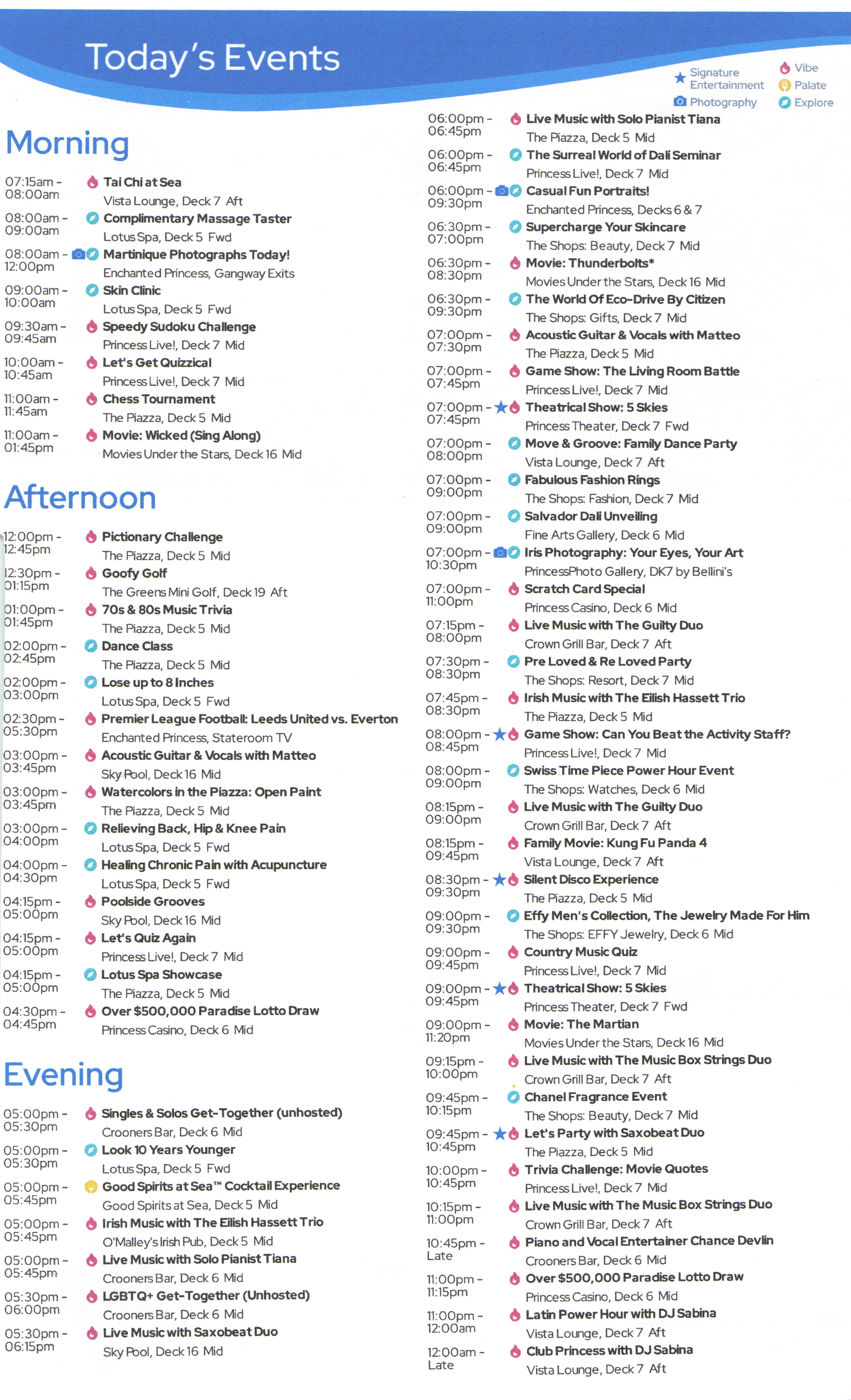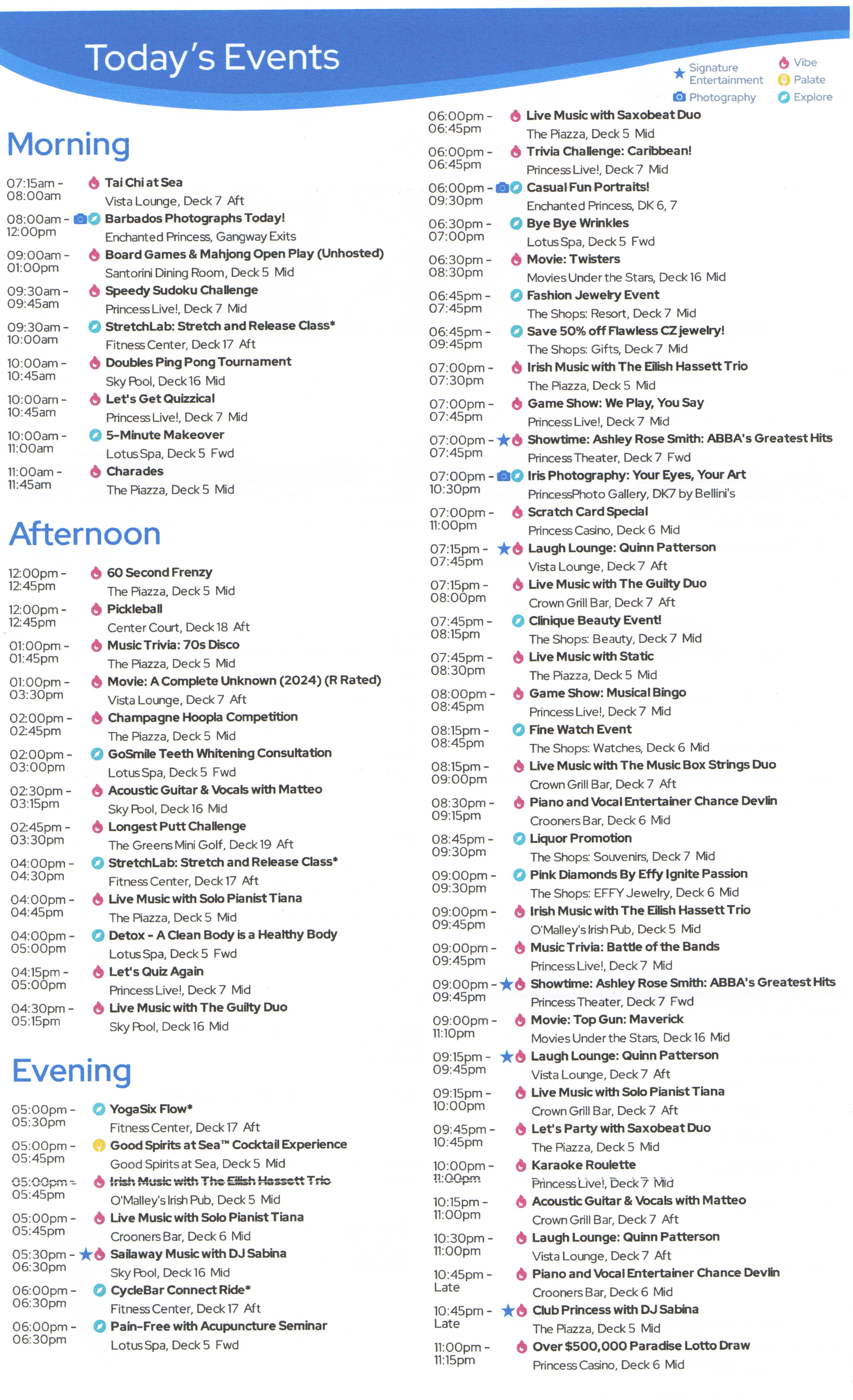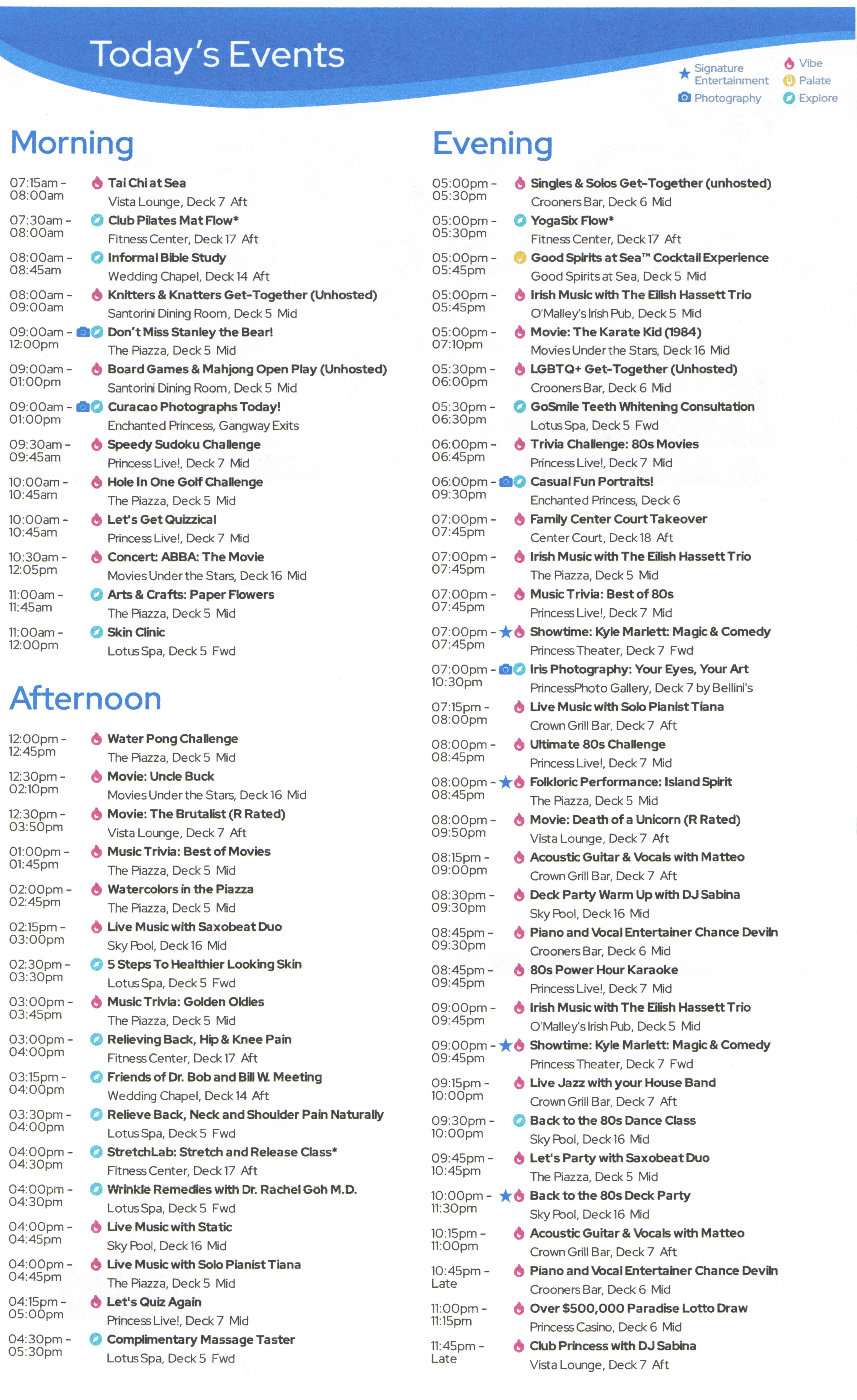DailiesClick each image for a larger version.2025-08-09: Princess Patter, Day 1 (Fort Lauderdale)2025-08-10: Princess Patter, Day 2 (At Sea)2025-08-11: Princess Patter, Day 3 (At Sea)2025-08-12: Princess Patter, Day 4 (Curacao)2025-08-13: Princess Patter, Day 5 (Bonaire)2025-08-14: Princess Patter, Day 6 (Aruba)2025-08-15: Princess Patter, Day 7 (At Sea)2025-08-16: Princess Patter, Day 8 (Aruba)2025-08-17: Princess Patter, Day 9 (Martinique)2025-08-18: Princess Patter, Day 10 (St. Kitts)2025-08-19: Princess Patter, Day 11 (San Juan)2025-08-20: Princess Patter, Day 12 (At Sea)2025-08-21: Princess Patter, Day 13 (At Sea)2025-08-23: Princess Patter, Day 15 (At Sea)2025-08-24: Princess Patter, Day 16 (At Sea)2025-08-09: Princess Patter, Day 1 (Fort Lauderdale)2025-08-10: Princess Patter, Day 2 (At Sea)2025-08-11: Princess Patter, Day 3 (At Sea)2025-08-12: Princess Patter, Day 4 (Curacao)2025-08-13: Princess Patter, Day 5 (Bonaire)2025-08-14: Princess Patter, Day 6 (Aruba)2025-08-15: Princess Patter, Day 7 (At Sea)2025-08-16: Princess Patter, Day 8 (Aruba)2025-08-17: Princess Patter, Day 9 (Martinique)2025-08-18: Princess Patter, Day 10 (St. Kitts)2025-08-19: Princess Patter, Day 11 (San Juan)2025-08-20: Princess Patter, Day 12 (At Sea)2025-08-21: Princess Patter, Day 13 (At Sea)2025-08-23: Princess Patter, Day 15 (At Sea)2025-08-24: Princess Patter, Day 16 (At Sea)