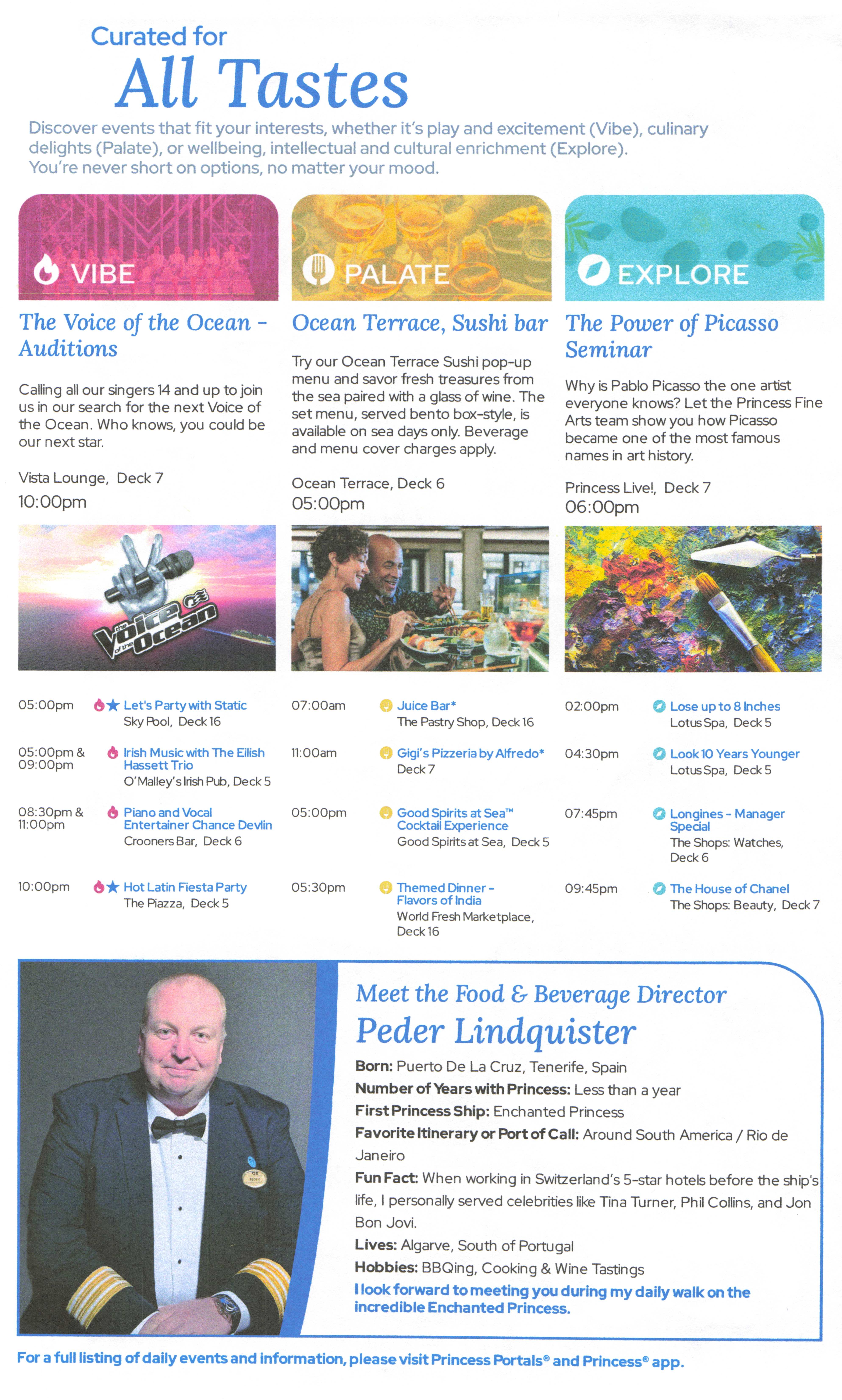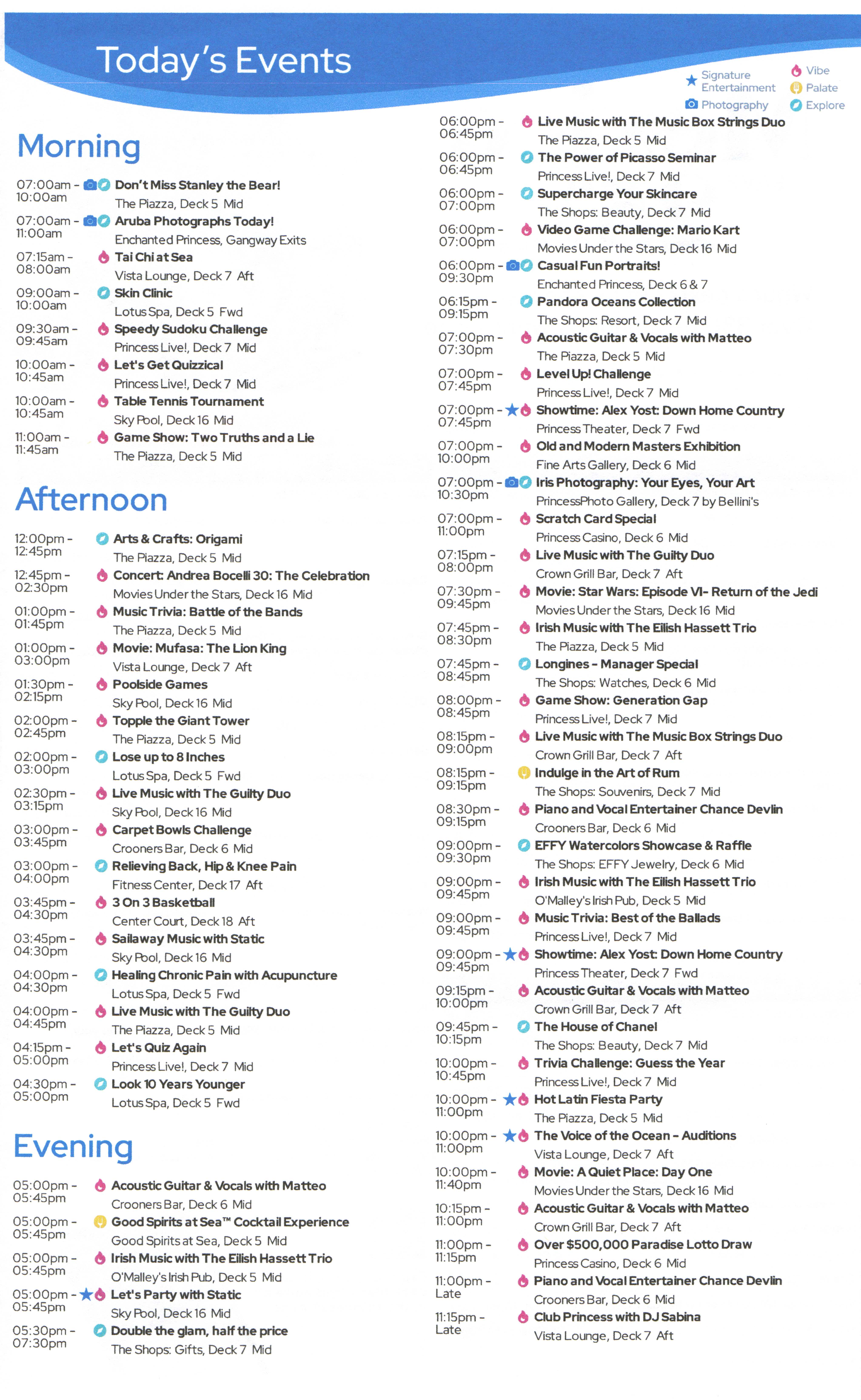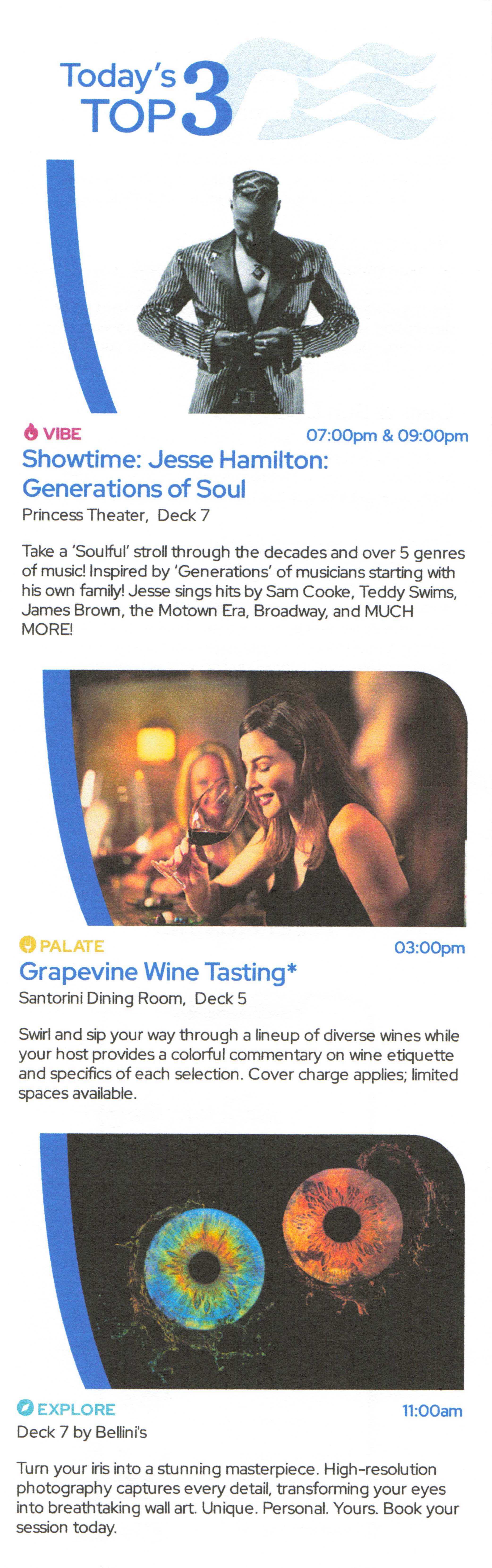 DailiesClick each image for a larger version.2025-08-09: Princess Patter, Day 1 (Fort Lauderdale)2025-08-10: Princess Patter, Day 2 (At Sea)2025-08-11: Princess Patter, Day 3 (At Sea)2025-08-12: Princess Patter, Day 4 (Curacao)2025-08-13: Princess Patter, Day 5 (Bonaire)2025-08-14: Princess Patter, Day 6 (Aruba)2025-08-15: Princess Patter, Day 7 (At Sea)2025-08-16: Princess Patter, Day 8 (Aruba)2025-08-17: Princess Patter, Day 9 (Martinique)2025-08-18: Princess Patter, Day 10 (St. Kitts)2025-08-19: Princess Patter, Day 11 (San Juan)2025-08-20: Princess Patter, Day 12 (At Sea)2025-08-21: Princess Patter, Day 13 (At Sea)2025-08-23: Princess Patter, Day 15 (At Sea)2025-08-24: Princess Patter, Day 16 (At Sea)2025-08-09: Princess Patter, Day 1 (Fort Lauderdale)2025-08-10: Princess Patter, Day 2 (At Sea)2025-08-11: Princess Patter, Day 3 (At Sea)2025-08-12: Princess Patter, Day 4 (Curacao)2025-08-13: Princess Patter, Day 5 (Bonaire)2025-08-14: Princess Patter, Day 6 (Aruba)2025-08-15: Princess Patter, Day 7 (At Sea)2025-08-16: Princess Patter, Day 8 (Aruba)2025-08-17: Princess Patter, Day 9 (Martinique)2025-08-18: Princess Patter, Day 10 (St. Kitts)2025-08-19: Princess Patter, Day 11 (San Juan)2025-08-20: Princess Patter, Day 12 (At Sea)2025-08-21: Princess Patter, Day 13 (At Sea)2025-08-23: Princess Patter, Day 15 (At Sea)2025-08-24: Princess Patter, Day 16 (At Sea)
